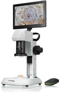 La préparation peut être confortablement observée via l'écran de 22,5 cm de diagonale. L'utilisation confortable et conviviale rend le microscope numérique particulièrement adapté à une utilisation quotidienne dans l'atelier. Les mesures, le contrôle de la qualité des surfaces ou le test des composants et des matières premières sont réalises facilement avec le microscope d'atelier. La présentation des insectes, des plantes et des rochers est également impressionnante.