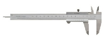 Règle et coulisseau en acier trempé inoxydable. Règle et verniers chromés mats. Surfaces de mesure int./ext. en pointes pour la mesure des petites cannelures et des trous.