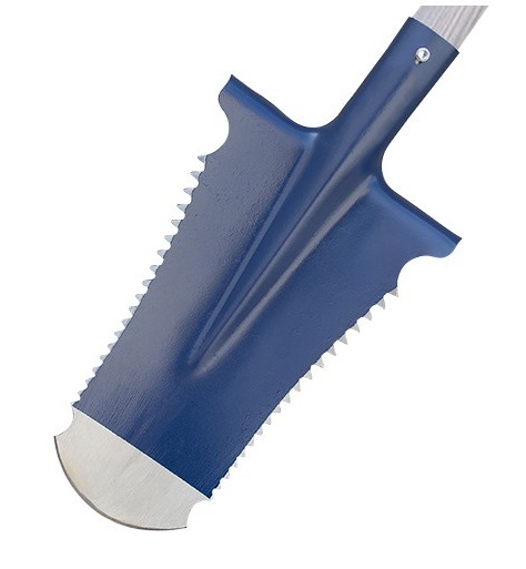 Tête de l'outil aiguisée comme une hache. Denture progressive affûtée comme une scie de chaque côté.
