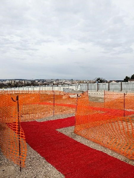 Il permet de matérialiser efficacement une zone de circulation réservée aux piétons, en offrant un revêtement sécurisé, stable et antidérapant sur des sols stabilisés (enrobé) : épaisseur 4/5 mm avec 1600 g/m2 (+/-