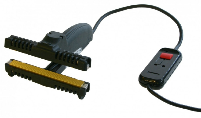 Pince équipée de deux barres de chauffe striées de 10 mm de largeur et de 150 mm de longueur, pour la fermeture de sachets complexes exclusivement (pas de films plastique).