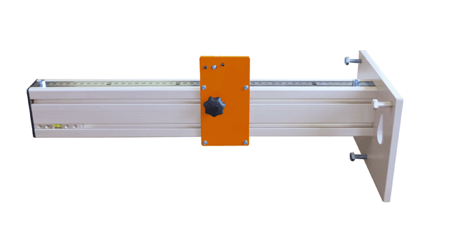 Robuste adaptateur de façade en aluminium. Coulisseau mobile pour loger le récepteur laser COMMANDER2. Plage de réglage env. 490 mm. 3 vis d’ajustage pour un alignement précis de l’adaptateur de façade.