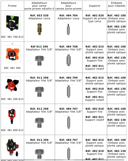 Cliquez ICI pour trouver les adaptateurs convenables pour les porte-prisme et pour les embases.