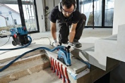 Tronçonnage quasiment sans poussière de la pierre avec les meuleuses angulaires 2 mains : GDE 230 FC-