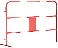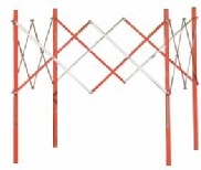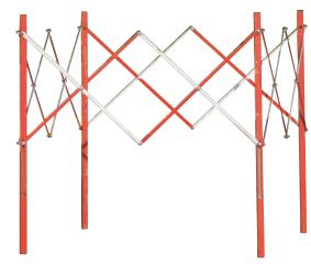 Barrière de chantier extensible en acier finition époxy. Structure facile à mettre en place, bien visible grâce à son revêtement bicolore et peu encombrante une fois pliée.