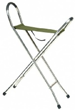 Canne de marche et siège de repos : hauteur d'assise 86.5 cm.