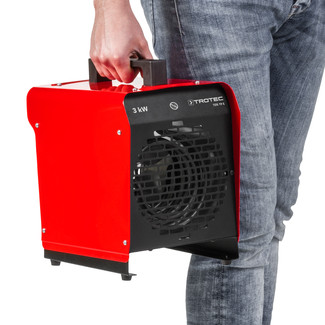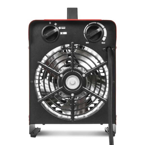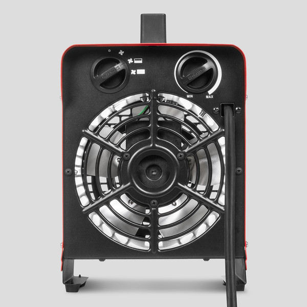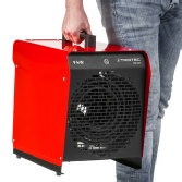 Aérotherme électrique portable à capacité de chauffe de 3 kW max. au carter rouge.