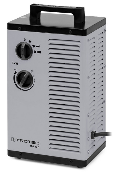 Les ventilateurs radiaux transportent l’air à la manière d'une roue à aubes, ce qui leur confère, par rapport aux constructions axiales, un flux d'air plus important à pression plus élevée. Voilà pourquoi les locaux peuvent être réchauffés plus vite et sur toute leur surface avec le TDS 20 P. De plus, le ventilateur radial est nettement plus silencieux qu’un ventilateur axial comparable.