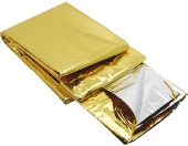 Couverture de survie haute protection. 1 face polypropylène métalisée. 1 face douce molletonnée.