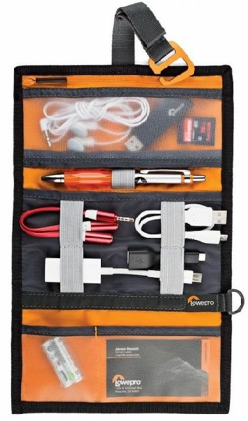 Le GearUp Wrap est un étui simple qui permet de ranger les accessoires de votre smartphone lors de vos déplacements. Il inclut des poches et un système de sangles élastiques pour garder en place des câbles, des chargeurs USB et une batterie.