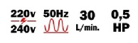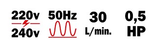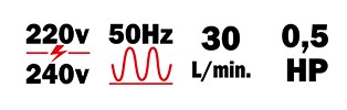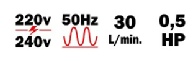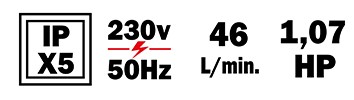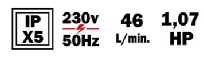 Joint mécanique en céramique et graphite. Pression max. 3,5 bars. Débit max. 46 l/mn. Hauteur d’aspiration max. 6 m.