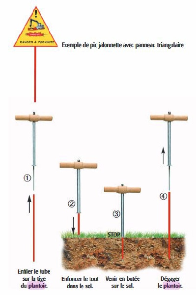 De plus, les jalonnettes seront toutes implantées de la même longueur (env. 300 mm dans le sol).
