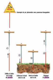 Se pose avec le plantoir afin d'éviter que le pic ne se torde à la mise en place.