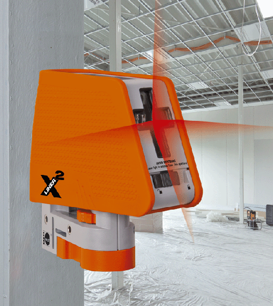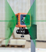 Le laser multiligne à calage automatique CUBE produit une croix laser et une ligne laser verticale supplémentaire, perpendiculaire à la croix laser.