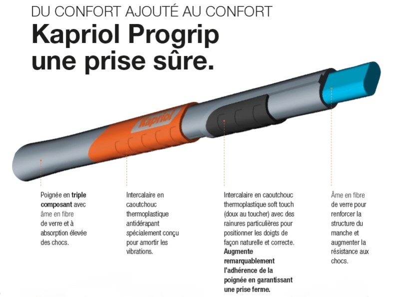 Disponible dans la version avec manche en plastique à triple composant avec âme en fibre de verre ou avec manche en bois de hêtre certifié verni.