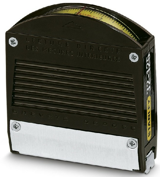 Blocage du ruban et retour automatique. Mesure intérieure par addition de 5 cm. Crochet 3 rivets offrant une bonne résistance à l'arrachement. Crochet avec position du zéro réel : pour mesures intérieures et extérieures. Agrafe pour port à la ceinture
