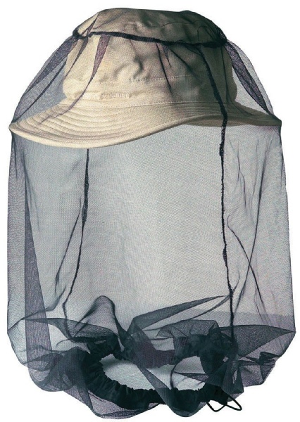 Moustiquaire de tête, noire, souple. 324 trous/cm2. A mettre par dessus un chapeau ou une casquette.