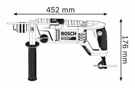 Fourni dans un coffret de transport avec poignée supplémentaire (Réf. 2605025190), coffret de transport (Réf. 2605438524), butée de profondeur 210 mm (Réf. 1613001010), mandrin automatique 13 mm (Réf. 2608572149).