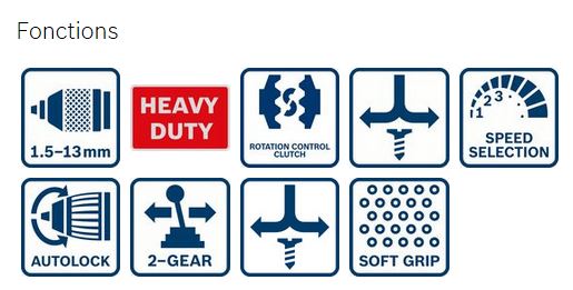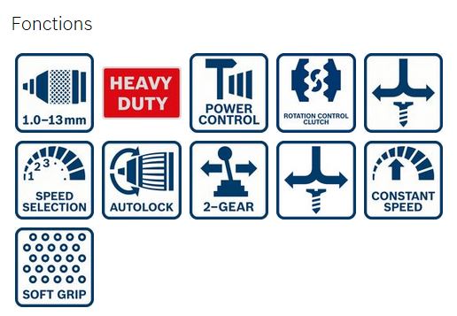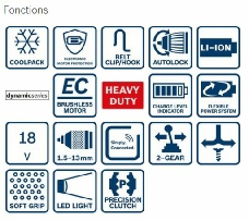 Fourni avec coffret de transport (Réf. 2605438377), butée de profondeur 210 mm (Réf. 1613001010), mandrin automatique, 13 mm (Réf. 2608572105).