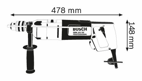 Fourni avec poignée supplémentaire (Réf. pièce de rechange 3602025021), butée de profondeur 310 mm (Réf. 1613001003), mandrin à clé 16 mm ( Réf 2608571020).