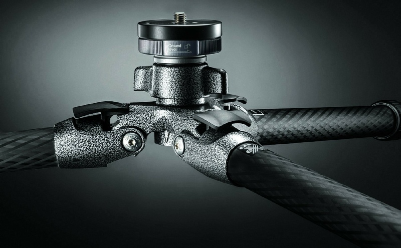 Trépied à 4 sections en carbone jusqu'à hauteur des yeux. Sélecteurs d'angles et G-