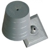 Le plomb dispose de protections en caoutchouc. Il se stabilise rapidement grâce à sa forme conique et à son chapeau qui limite les oscillations. Il peut être suspendu soit à 50 mm, soit en aplomb de la surface verticale sur laquelle le boîtier est fixé.