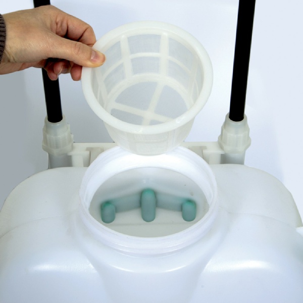 Réservoir en polypropylène. Livré avec tuyau flexible haute résistance et une lance télescopique.