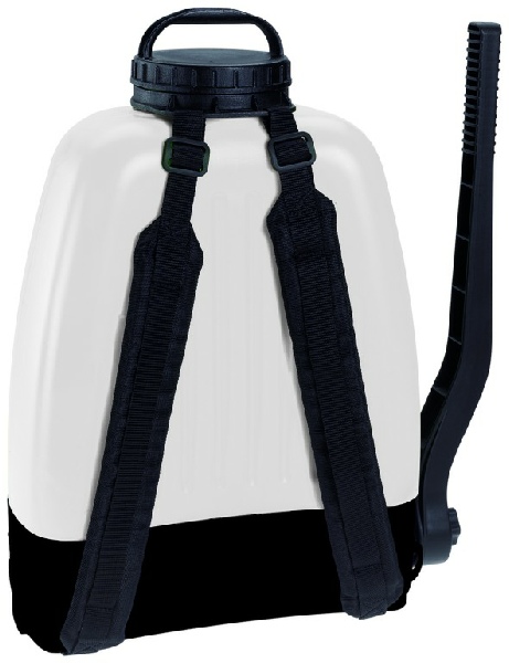 Pulvérisateur dorsal manuel pour produits solvantés à base d’hydrocarbures totalement hermétique même tête en bas, résistant et très complet. Grande ouverture de remplissage (Ø 12 cm) équipée d´un filtre. Appareil équipé de joints FPM VITON®. La chambre de compression de 1000 cm3 est intégrée à l’intérieur de la cuve pour une plus longue durée de vie. Pression de travail de 2/6 bars. Soupape interne de sécurité directement fixée dans la cuve. Groupe de pompage protégé et facilement accessible. Filtre du groupe de pompage facile à accéder et à nettoyer. Tuyau tressé résistant à la chaleur et au gel (1,40 m). Poignée anti goutte avec large préhension et ressorts en acier inox. Lance composite avec tête courbe avec jet réglable et livrée avec 2 buses. Il garantit une pulvérisation constante et prolongée sans aucune fatigue avec son levier ergonomique. Grand confort de portage grâce aux bretelles rembourrées et hydrofuge ; sangles résistantes avec système de décrochage rapide. Equipé d’un porte lance verticale pour ne pas la poser au sol. Montage simple et rapide sans outils.