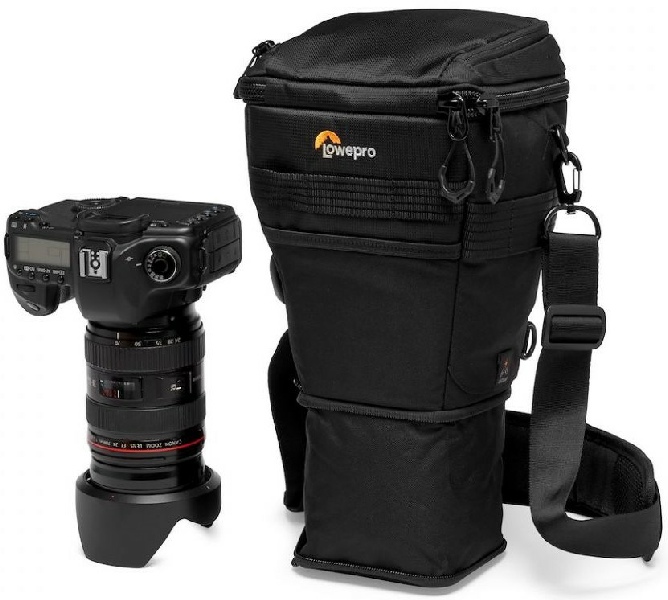 Peut accueillir un petit boîtier reflex et son objectif monté.