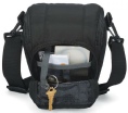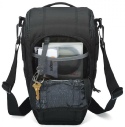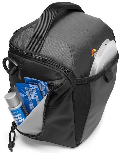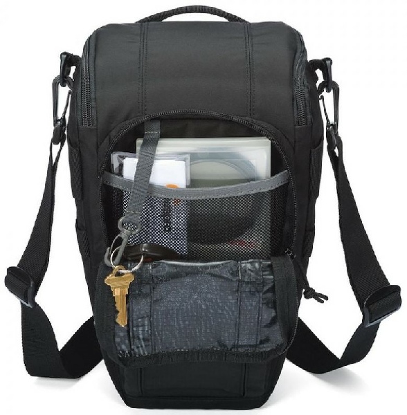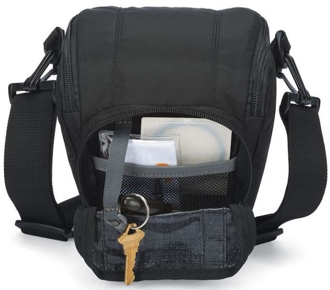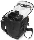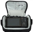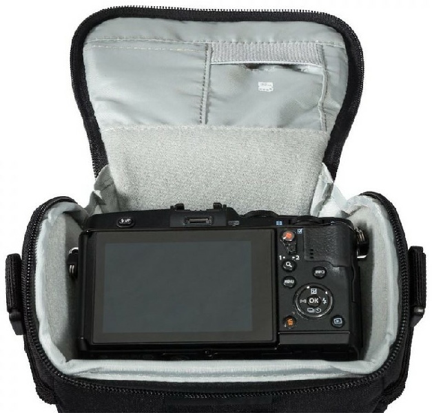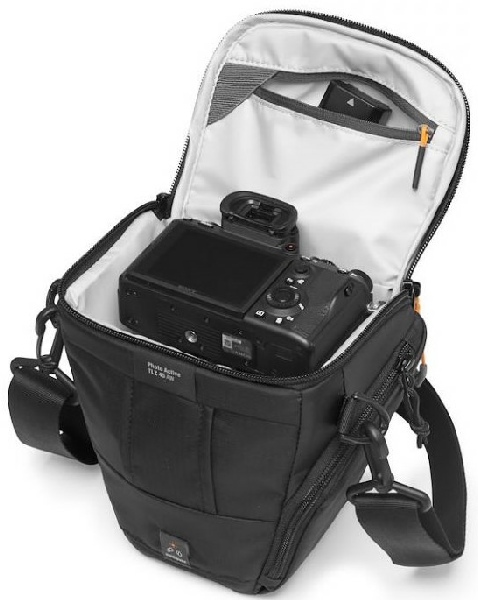 Peut accueillir un petit boîtier reflex monté avec un objectif 18-55mm f/2.8 ou un kit hybride et petits accessoires.