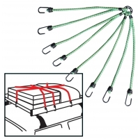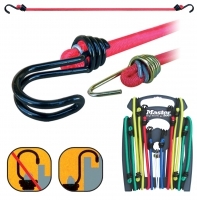 8 sandows à crochets doubles "retournés" en acier Ø 3 mm, élastique Ø 9 mm, longueurs : 2 x 450 mm - 2 x 600 mm - 2 x 800 mm - 2 x 1000 mm.