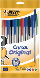 Sachet de 10 stylos à bille Cristal Original 4 x bleu, 2 x noir, 2 x rouge, 2 x vert -