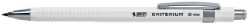 Manche hexagonal. Degré de dureté : HB. Gomme rétractable intégrée. Avec clip. Zone grip striée. Aspect métallique. Fourni avec 3 mines. Idéal pour les dessins techniques.