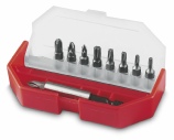 Pozidriv 10 x n°0x25 mm / Pozidriv 20 x n°1 x 25 mm / Pozidriv 30 x n°2x25 mm / Pozidriv 10 x n°3 x 25 mm / Pozidriv 10 x n°1 x 50 mm / Pozidriv 10 x n°2 x 50 mm / Pozidriv 10 x n°1+2 x 60 mm / Phillips 10 x n°0x25 mm / Phillips 20 x n°1 x 25 mm / Phillips 30 x n°2x25 mm / Phillips 10 x n°3 x 25 mm / Phillips 10 x n°1+2 x 60 mm / Standard 10 x 4 x0,6 / Standard 10 x 5 x 0,8 / Standard 10 x 6,5 x 1,2 / Standard 10 x 8 x 1,6