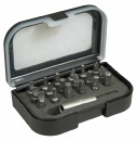 Jeu de 31 pièces : Fente : 4 - 4,5 - 5,5 mm - PH 1 - PH2 - PH3 - PZ1 - PZ2 - PZ3 Torx : T10 - T15 - 2 x T20 - 2 x T25 - 2 x T27 - 2 x T30 - 2 x T40 Tamper proof Torx : T10 - T15 - T20 - T25 - T30 Hexagonal : 3 - 4 - 5 - 6 mm Porte embout adaptateur 50 mm