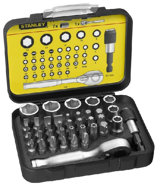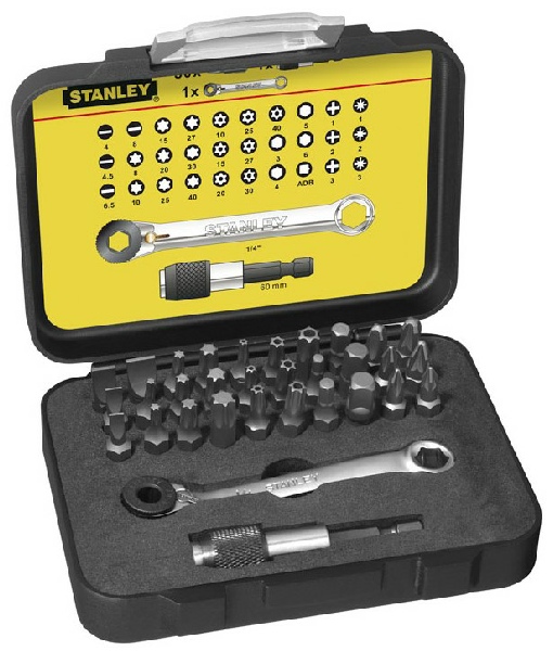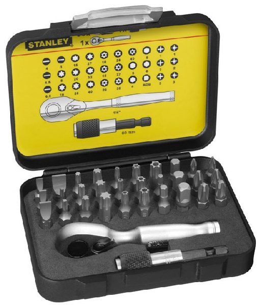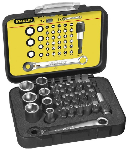 Coffret d’embouts de vissage 1/4 " 25 mm + Clé à cliquet - 39 pièces - Gamme pro - STANLEY