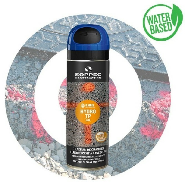 Traceur de chantier HYDRO TP® SOPPEC : marquage hautement fluorescent et respectueux de l'environnement