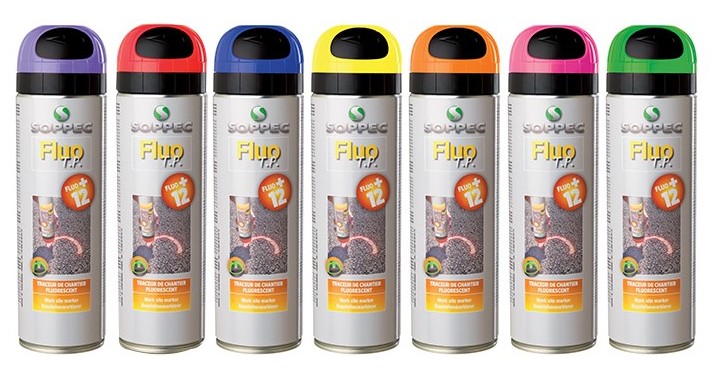 Traceur de chantier FLUO TP® SOPPEC : marquage hautement fluorescent et de très longue durée