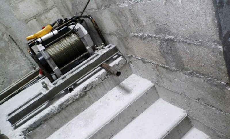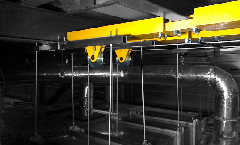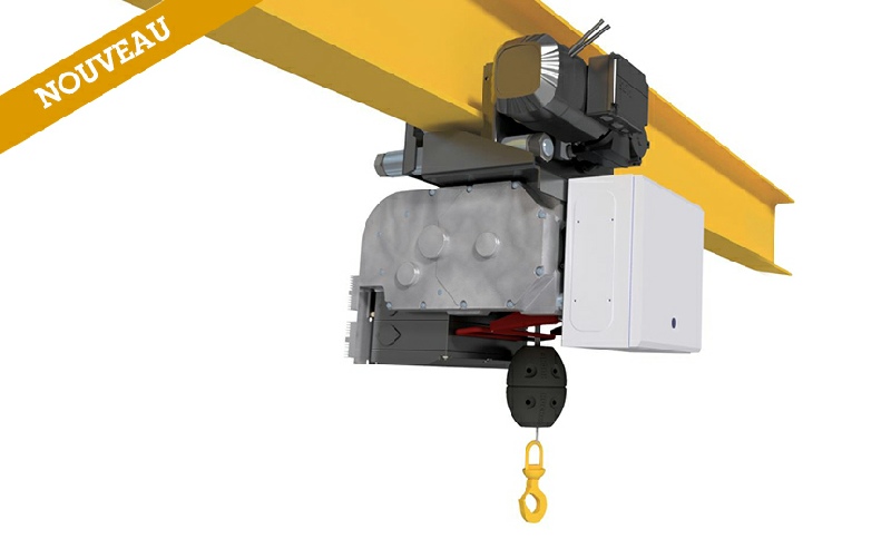 Treuil électrique avec câble acier torsadé et poulie de mouflage.