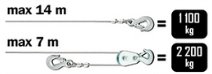 Possibilité de détacher le 3ème crochet pour doubler la longueur de travail en divisant la capacité de charge par deux.