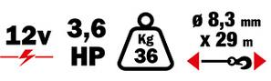 Moteur 12 V - Traction maximum : env. 4000 kg