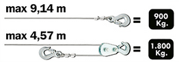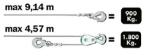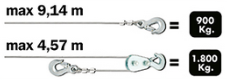 Capacité charge statique 900 kg et 1800 kg avec mouflage.