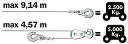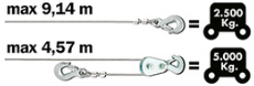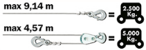 Capacité charge roulante 2500 kg et 5000 kg avec mouflage.