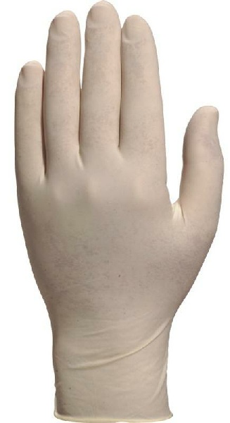 Gant à bord roulé, ambidextre, chloriné pour gantage et dégantage faciles.