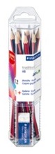 Corps hexagonal couleurs assorties, embout gomme, dureté 2 = (HB)