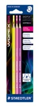 Blister Composé de 3 crayons graphite HB assortis (jaune fluo, rose fluo, violet fluo)