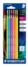Blister Composé de 6 crayons graphite HB assortis (jaune fluo, rose fluo, violet fluo, vert fluo, orange fluo, bleu fluo)