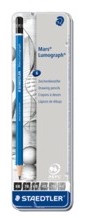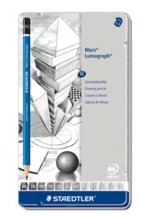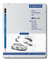Boîte métal composé de 19 crayons graphite, 16 graduations assorties (8B, 7B, 2 x 6B, 5B, 2 x 4B, 3B, 2 x 2B, B, HB, F, H, 2H, 3H, 4H, 5H, 6H)