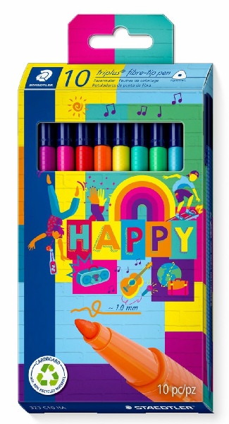 Boîte en carton contenant 10 triplus color de couleurs assorties, Happy.